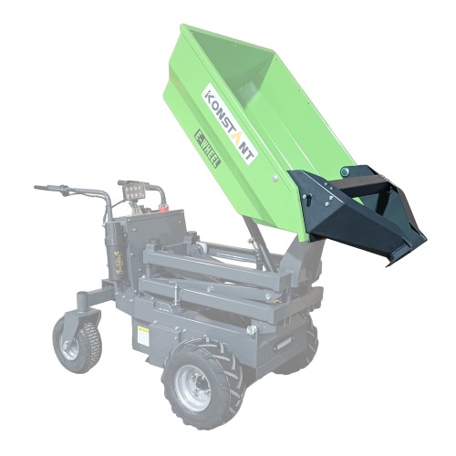 Grâce au cercle de braquage à 360 degrés et à la transmission avant et inverse, le Konstant Mini Dumper offre une maniabilité exceptionnelle même dans les espaces restreints ou le terrain rugueux. Les grands pneus sans tubeaux (16x6,5-8 avant et 13x5,0-6 arrière) offrent une traction et une stabilité supérieures, assurant un mouvement lisse sur des surfaces inégales, de la boue, du gravier ou même des pentes abruptes.